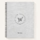 A beautiful monogram design using your name and initial in a classy circle shape. A grey faux linen texture in the background with black accents creates a unique styles. Customise the monogram and text and make it your own recipe cookbook. Ideal office and school stationery supplies. Other linen colours offered in this design.