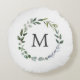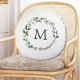 Monogrammed Sage Green Leaves Greenery Wreath Round Cushion