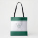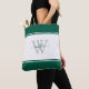 Girly modern minimalist script personalised trendy monogram tote bag. The elegant emerald green stylish script matches the line design in colour but offsets it in style, creating a fun twist to the minimalist look.