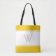 Girly modern minimalist script personalised trendy monogram tote bag. The elegant yellow stylish script matches the line design in colour but offsets it in style, creating a fun twist to the minimalist look.
