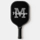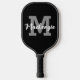 Modern personalised custom colour pickleball paddle featuring a monogram and name shown in an editable hand-lettered script name in changeable black, white and grey colours for the pickler or pickleball player. COLOR CHANGES: Change the text or background colours or add a styled graphics background by clicking on the EDIT tab in the PERSONALIZE section to create your own custom design. PADDLE OPTIONS: Choose from Black, Tan or White edging and grip colours on the ordering page. ASSISTANCE: For help with design modification or personalisation, colour change, transferring the design to another product or if you would like coordinating items, contact the designer BEFORE ORDERING via the Zazzle Chat MESSAGE tab below or email makeitaboutyoustore@gmail.com.