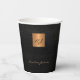 Luxury monogram personalised paper cups with a black leather look background and a faux gold copper metallic square with elegant script signature name and initials. ++++++++++++++ Easy to personalise with your personal initials and name. +++++++++++++ Could be an elegant gift for a birthday, housewarming, graduation, anniversary, retirement, Christmas or any other occasion.