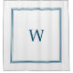 Monogrammed Shower Curtain. If you're looking for a modern, monogrammed shower curtain that exudes class and sophistication, then you'll love our elegant blue and white shower curtain. Featuring a classic, stylish stripe pattern, this eye-catching curtain will look great in any bathroom.