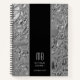 Monogrammed Silver Metallic Business Notebook. Fully customise this monogrammed silver crushed faux metallic aluminium foil business notebook with your monogram, name, profession and contact details.
