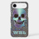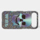 This cool and unique Case-Mate Barely There iPhone 6 Plus case for a boy or young man has a background with oil slick water drops on wet sand, with an evil looking grinning purple, blue and green metallic skull on it. Personalise it with your name, initials, monogram or other text.