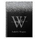Monogrammed Sliver Black Glitter Elegant Script Notebook