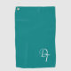 Monogrammed - solid teal colour golf towel Designed for those who like the 1950's retro feel .