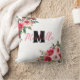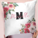 Monogrammed Stylish red and pink blooming flower Cushion