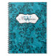 This personalised teal blue, black, and white ornate floral scrolled pattern notebook has template boxes for you to add your name, monogram or other text to. If you need help customising this item, please email niteowlstudio@gmail.com for assistance.