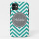 Monogrammed Teal Blue & Grey Zigzag Case-Mate iPhone Case