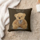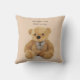 Monogrammed newborn's Teddy bear throw pillow monogrammed with name and date. It's dark brown on one side and light brown on the other. Available in different sizes and materials.
