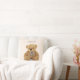 Monogrammed newborn's Teddy bear throw pillow with name and date. Available in different sizes.