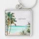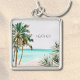 Monogrammed Tropical Palm Tree Leaves Blue Beach Key Ring