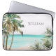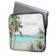 Protect your laptop in tropical style! This monogrammed sleeve features a watercolor blue beach, palm tree leaves, and coastal vibes—suitable for summer lovers.
