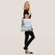 Monogrammed Tropical Palm Tree Leaves Blue Beach Tote Bag