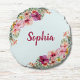 Monogrammed Tropical Pink Flowers Floral Botanical Round Cushion