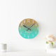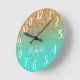 Monogrammed Turquoise and Gold Glitter Ombre Round Clock