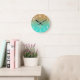 Create your own personalised monogram turquoise and faux gold glitter ombre wall clock.