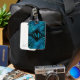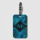 Tropical turquoise palm tree fronds on black, these luggage tags feature your monogram in chic turquoise lettering on black on the front and a card slot on the back for easy identification. Create for yourself or give as a gift.