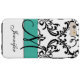 Monogrammed Turquoise Black White Swirls Damask Case-Mate iPhone Case