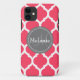 Monogrammed Vibrant Pink & Grey Quatrefoil Case-Mate iPhone Case
