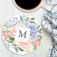 Monogrammed Watercolor Blue Pink Spring Floral Coaster