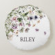 Monogrammed Watercolor Purple Wildflowers Round Cushion