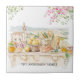 Introducing our Monogrammed Watercolor Tuscany Mediterranean Italy ceramic tile. Featuring watercolor illustration of Mediterranean food with background of Tuscany and its floral plants, Can make a great gift for friend and family.