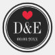 Monogrammed wedding favour stickers with red heart