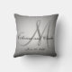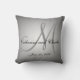 Personalised Monogrammed Throw Pillow with bride and groom names and wedding date. Makes a great gift for newly weds. You can customise the texts. Elke Clarke© for MonogramGallery at Zazzle. Grey and Black. Great for your bedroom, favourite chair, as fun decor in your family room or formal decorative addition to your living room as a wedding keepsake.
