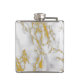 Monogrammed White Marble Stone Gold Accent Hip Flask