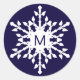 Monogrammed White Snowflake on Navy Blue Classic Round Sticker