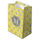 Monogrammed Yellow and Grey Diamonds Ikat Pattern Medium Gift Bag