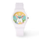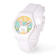 An adorably sweet pink and white Easter bunny peeks out behind three painted and dyed eggs in a backyard of grass and spring flowers and daisies. It can be personalised and monogrammed with your initial, letter or monogram. Artwork © Chrissy H. Studios, LLC. All rights reserved.