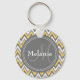 Monogrammed Yellow & Grey Chevron Pattern Key Ring