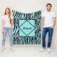 Monogrammed Zebra Print Black and Teal Turquoise Fleece Blanket
