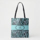 Monogrammed Zebra Stripe Turquoise Teal and Black Tote Bag