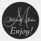 Elegant Wedding Favour Stickers or Cake Box Labels. Design by Elke Clarke ©2009. Personalise with your names, monogram and wedding message to your guests to say thank you to them for coning to your wedding. Choose a background colour and a sticker shape. Your stickers can be square, circular, rectangular, oval, heart-shaped, star-shaped or triangular.