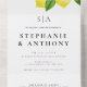 Monograms lemons citrus branch greenery wedding. Customise with your wedding details.