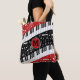 Contemporary curved piano keys and white musical notes with contrasting red and black panels with customisable monogram