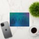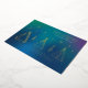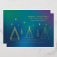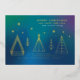 This holiday business card features a gradient background inspired by the northern lights and a simple, modern and masculine design of stars and Christmas tress.