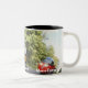 Beverage mugs with photo of yellow MTe and red MTi going down the road