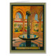 Vintage travel poster for Monreale , Palermo in Italy. Colourful Italian courtyard with an ornate fountain.
