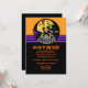 Start your Halloween party off right with our fun monster bash Halloween Party Invitation and get ready for a spooky night of fun! Our unique halloween invitation features frankenstein, a witch & bats set on a purple, orange & black background. Customise with your personal information & you're all set to go.