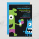 Lovely Kids Birthday Party Invitation with an original illustration of two colourful cute monsters, one having an ice cream.
