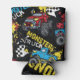 Abstract seamless Monster Car pattern on grunge shape cracked background with shabby dots and spray paint texture, ink. Childish style wheel auto repeated decor.