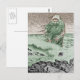 Vintage colourized illustration of sea monster climbing out of the waves onto the rocks. Illustration by Norwegian artist Theodor Kittelsen.