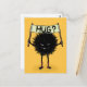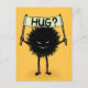 Hug postcard with a cute evil monster - grinning hairy character from the family of the Evil Flower Bug. It holds a sign with the hand-lettered world “Hug?”. This friendly weird creature has nice little toeless socks just to keep its feet warm in this unfriendly world.