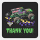 Bright slime-green lettering spells out “Thank You,” creating a striking contrast against the dark background while perfectly matching the Grave Digger color scheme. The message on this design is fully customizable, allowing you to personalize the wording to fit your monster truck themed birthday celebration. With its bold graphics, racing colors, and iconic Monster Jam imagery, this design is perfect for party favors, decorations, thank you stickers, and coordinating monster truck party supplies.