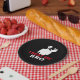 A white silhouette of a horrible zombie or monster, red text Treat me, white text Bro. black background. Funny one-of-a-kind Halloween paper plate for anyone. Customisable. You can change the image and two texts. Use the Customise button to fine tune the product to your personal needs and wishes. Have fun.